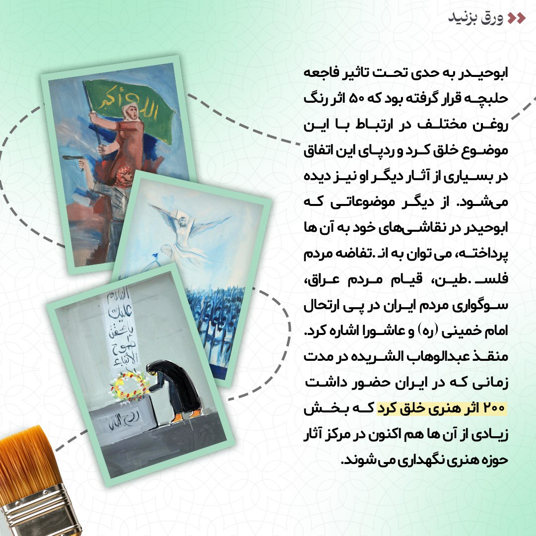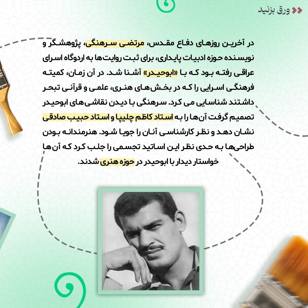 به گزارش روابط عمومی سازمان تبلیغات اسلامی، در آخرین روزهای دفاع مقدس، نقاش اسیری از اردوگاه اسرای عراقی تهران راهی حوزه هنری شد. هنرمندی که به خواست خود تسلیم نیروهای ایرانی شده بود و تا مدتی پس از آزادی نیز در ایران ماند. به مناسبت هفته دفاع مقدس، در این شماره از نشریه دیجیتال قصه‌ی نقاش اسیری را مرور می‌کنیم که با دستور مستقیم رهبر انقلاب آزاد شد.