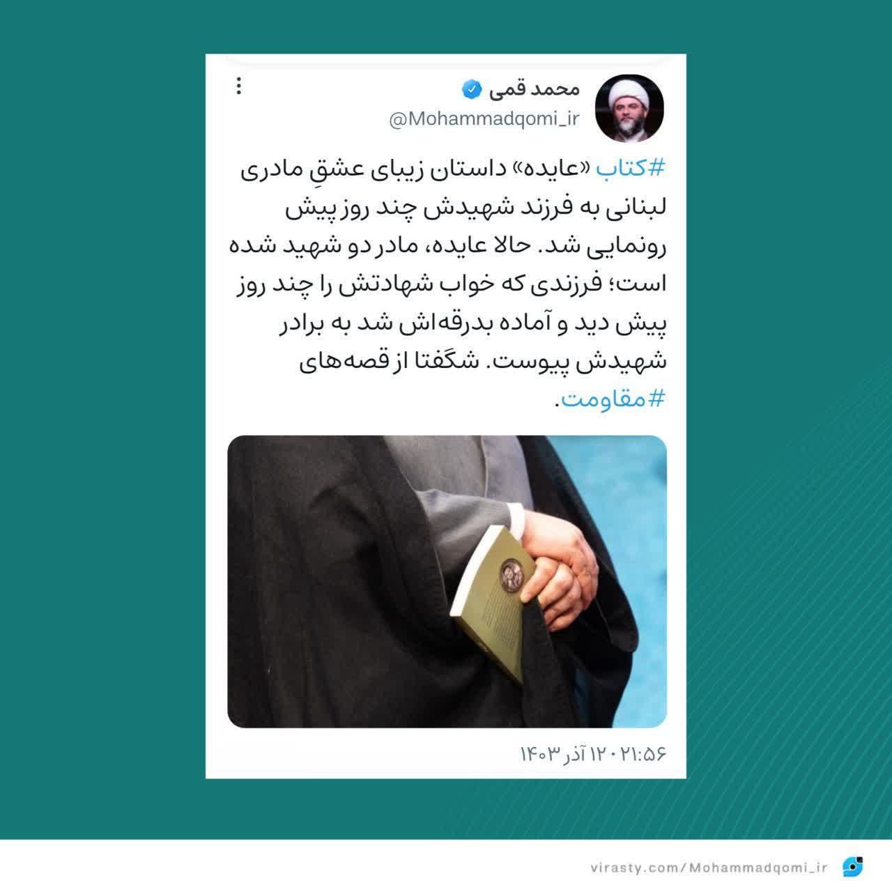 واکنش حجت‌الاسلام قمی به رونمایی از کتاب «عایده»