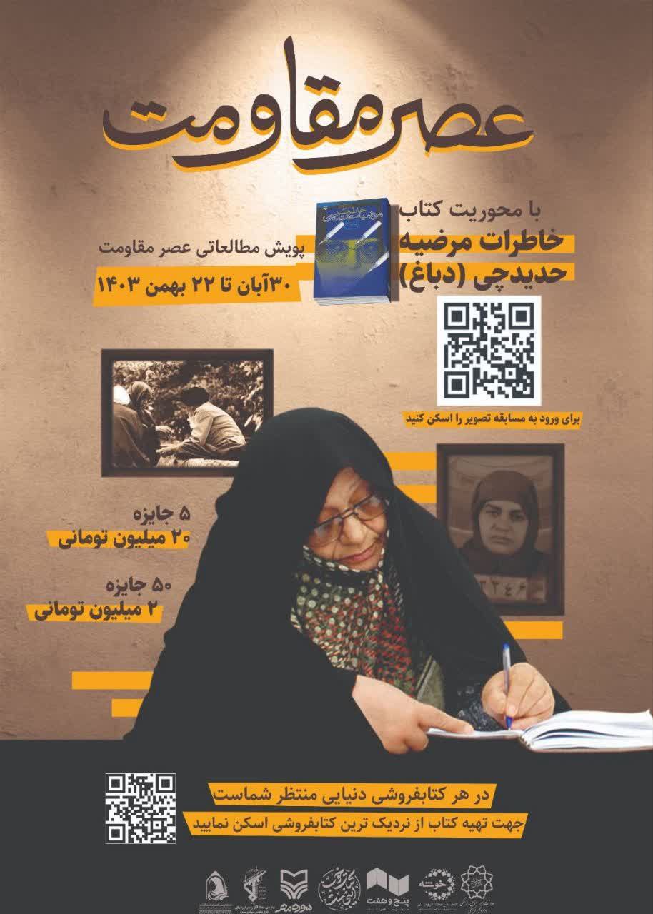 پویش مطالعاتی «عصر مقاومت» با محوریت کتاب «خاطرات مرضیه حدیدچی (دباغ)» منتشر شد.