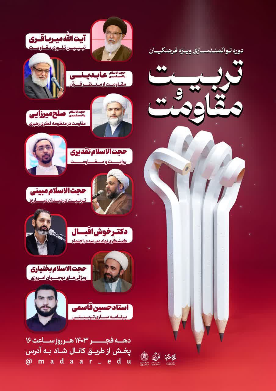 دوره تربیت و مقاومت ویژه فرهنگیان و فعالان تربیتی با حضور اساتید برتر برگزار می‌شود.