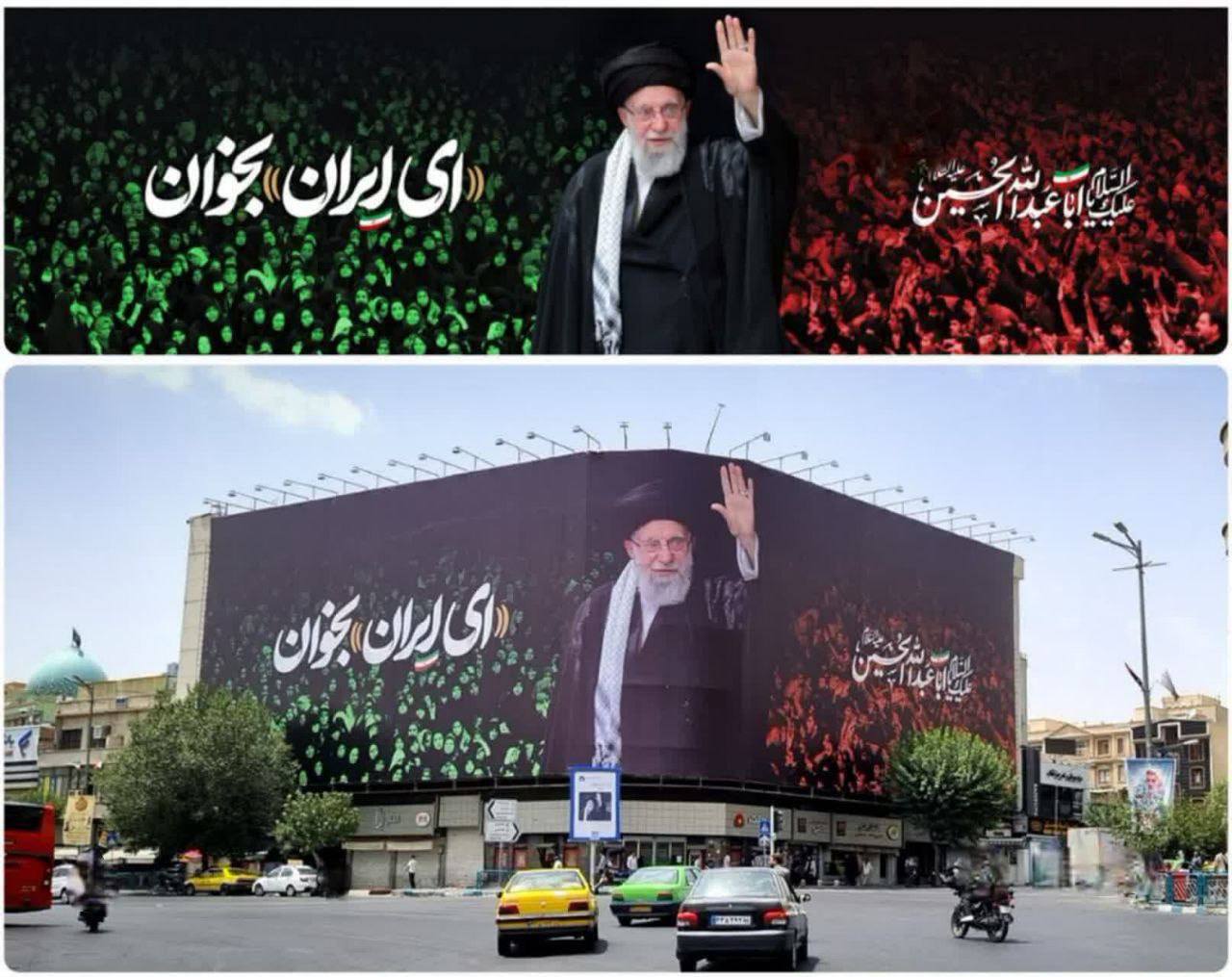درحالی که رسانههای معاند حتی در روزهای پس از آتشبس به دروغسازیهای خود ادامه میدادند، همزمان با شب عاشورای حسینی، عزاداران حاضر در حسینیه امام خمینی (ره)، چشمشان به جمال رهبر معظم انقلاب روشن شد. آیتالله خامنهای باحضور مقتدرانه و پرصلابت خود، تمام آن دروغهای واهی را نقش بر آب کردند. خواسته رهبری از مداح جلسه برای آن که «ای ایران» بخواند، دستمایه تصویر دیوارنگاره میدان انقلاب شد.