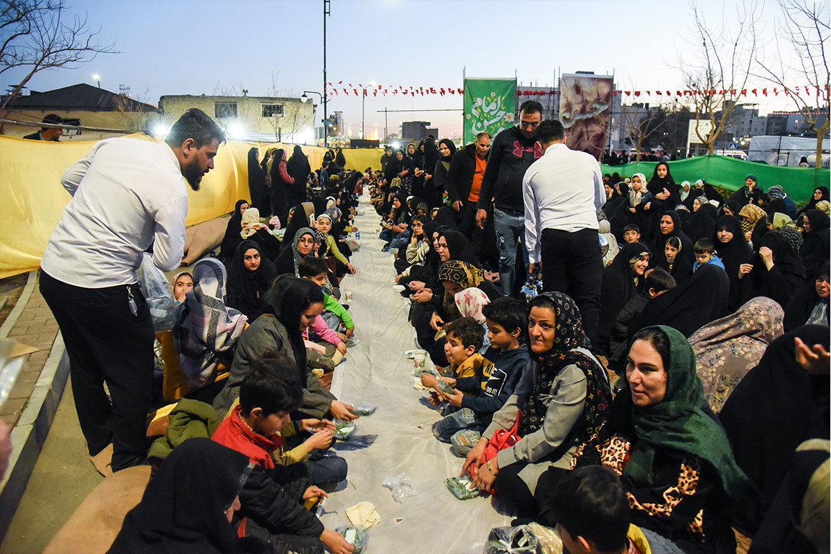 بزرگترین سفره افطار جهان اسلام، عصر شنبه ۲۵ اسفند ۱۴۰۳ همزمان با شب ولادت امام حسن مجتبی (ع) با پذیرایی از ۸۰ هزار روزه دار در بلوار رضوان مشهد برپا شد.