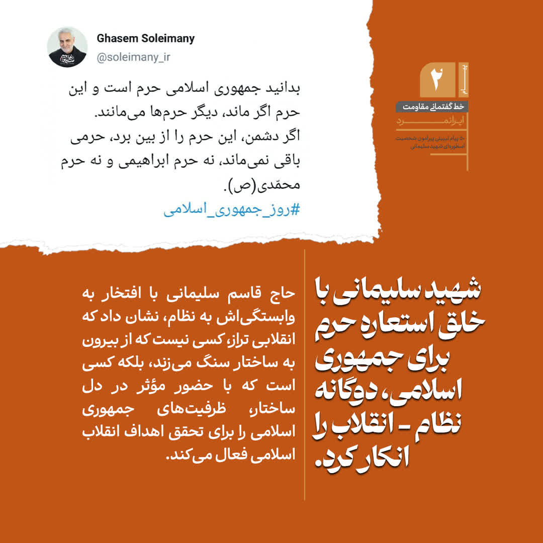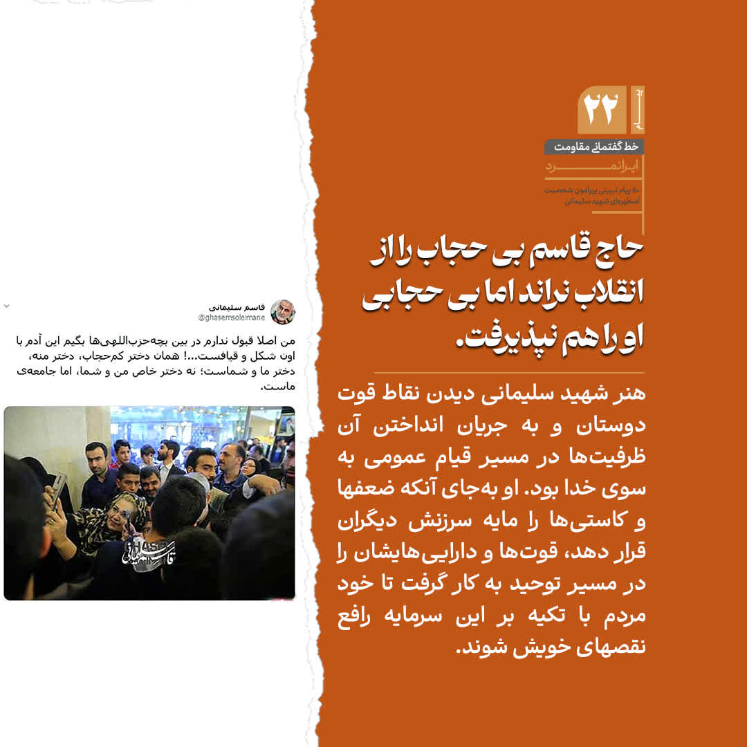 دعوتید به خواندن بخشی از 50 پیام تبیینی پیرامون شخصیت اسطورهای شهید سپهبد حاج قاسم سلیمانی، روایتی کوتاه، از مکتب مردی که نامش با اخلاص، شجاعت و مجاهدت مخلصانه گره خورده است.