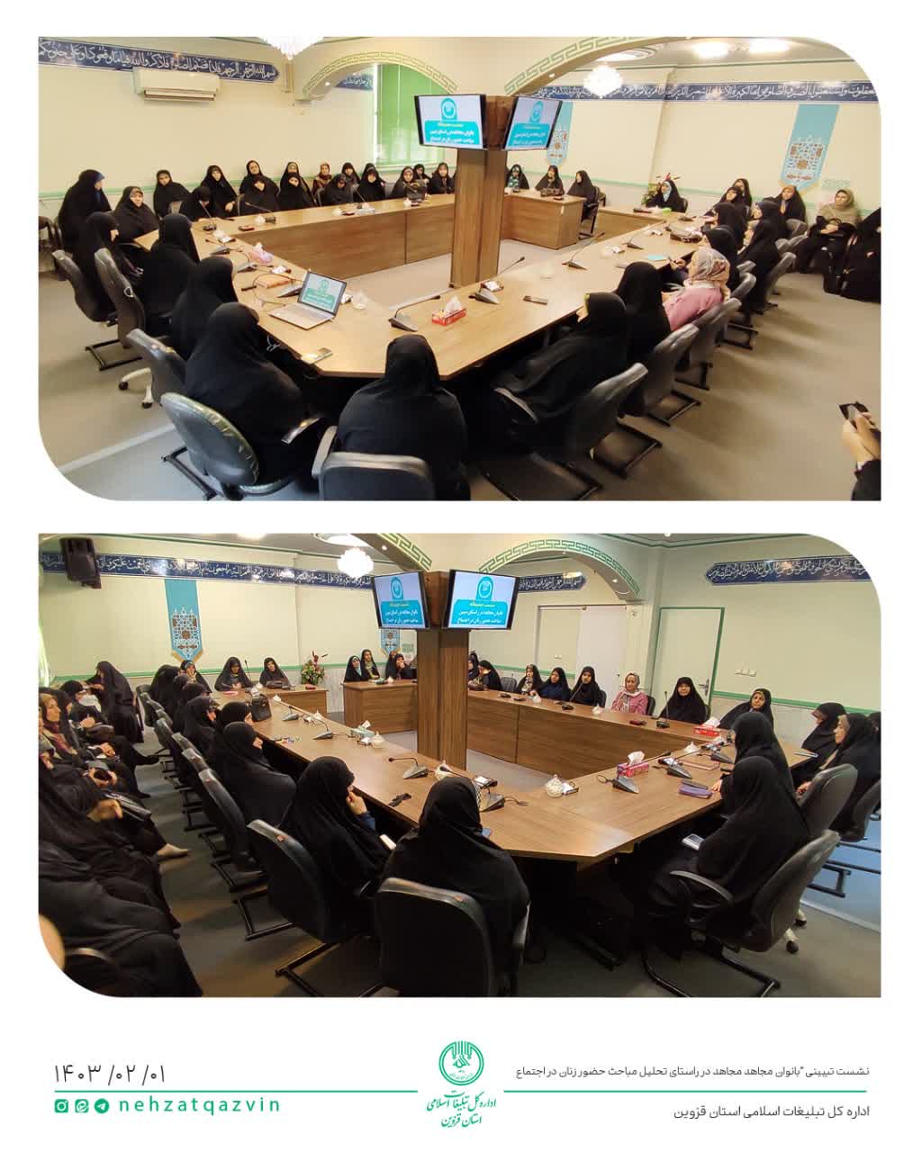 نشست تبیینی" بانوان مجاهد در راستای تحلیل مباحث حضور زنان در اجتماع " پیرامون بررسی فرصت ها، مسائل و آسیبهای فعالیت های فرهنگی اجتماعی بانوان