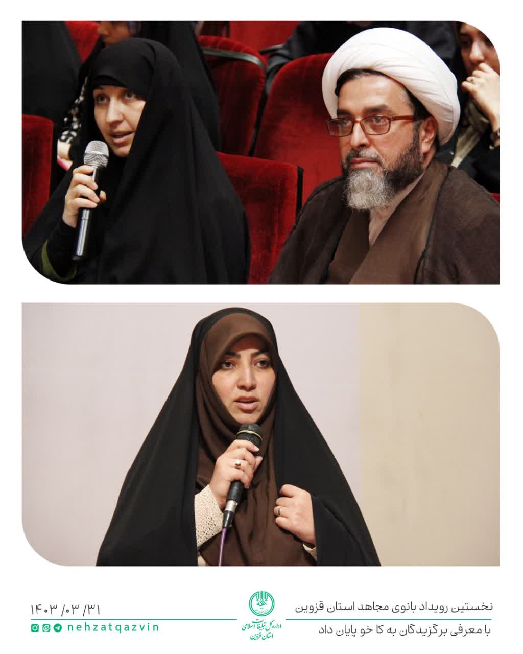 نخستین رویداد بانوی مجاهد استان قزوین با معرفی برگزیدگان به کار خود پایان داد به مناسبت سالروز تاسیس سازمان تبلیغات اسلامی و همچنین هفته تبلیغ و اطلاع رسانی دینی ،نخستین رویداد بانوی مجاهد با موضوع تبیین ومناظره ،مسئله یابی وحل مسئله شبهات روز انتخابات پیش رو" صبح امروز پنجشنبه سی یکم خرداد ماه به مدت یک روز و با حضور بیش از 100 بانوی فرهیخته استان در محل اداره کل تبلیغات اسلامی استان قزوین برگزار شد. حجت الاسلام پورآرین مدیرکل تبلیغات اسلامی ، سرکار خانم سارا طالبی مدیر مرکز راهبری و هماهنگی امور بانوان سازمان تبلیغات اسلامی ، آقای رضا فضلی مسئول امور فرق و ادیان اداره کل و حجت الاسلام محمدی معاون فرهنگی اداره کل از اعضای هیئت داوران بودند. در پایان این رویداد ، جوایز برگزیدگان همراه با لوح تقدیر به گروه های اول، دوم و سوم اعطا شد. سخنرانان این رویداد جناب دکتر سالار ولایتمدار (آبنوش) و سرکار خانم فاطمه محمدبیگی نمایندگان محترم مردم قزوین در مجلس شورای اسلامی و بودند.
