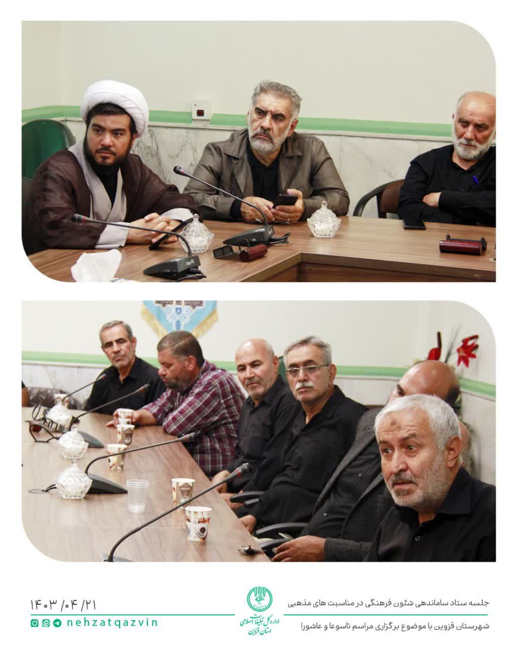جلسه ستاد ساماندهی شئون فرهنگی در مناسبت های مذهبی شهرستان قزوین با موضوع برگزاری مراسم تاسوعا و عاشورای حسینی (ع)