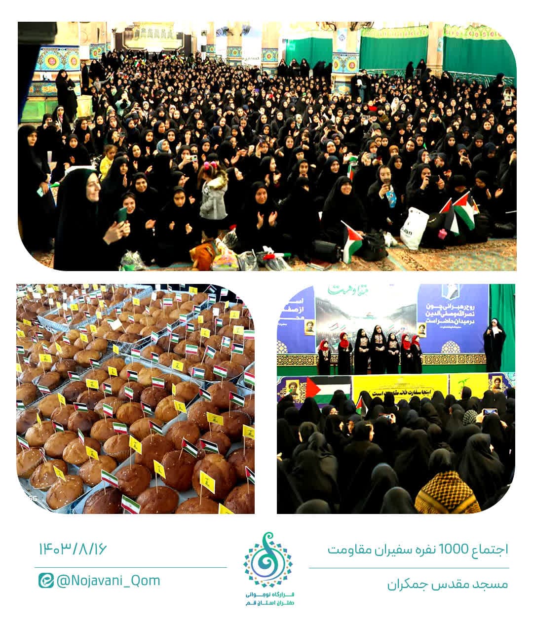 اجتماع بزرگ سفیران مقاومت با حضور ۱۰۰۰ دانشآموز در شبستان کربلا مسجد مقدس جمکران برگزار شد.