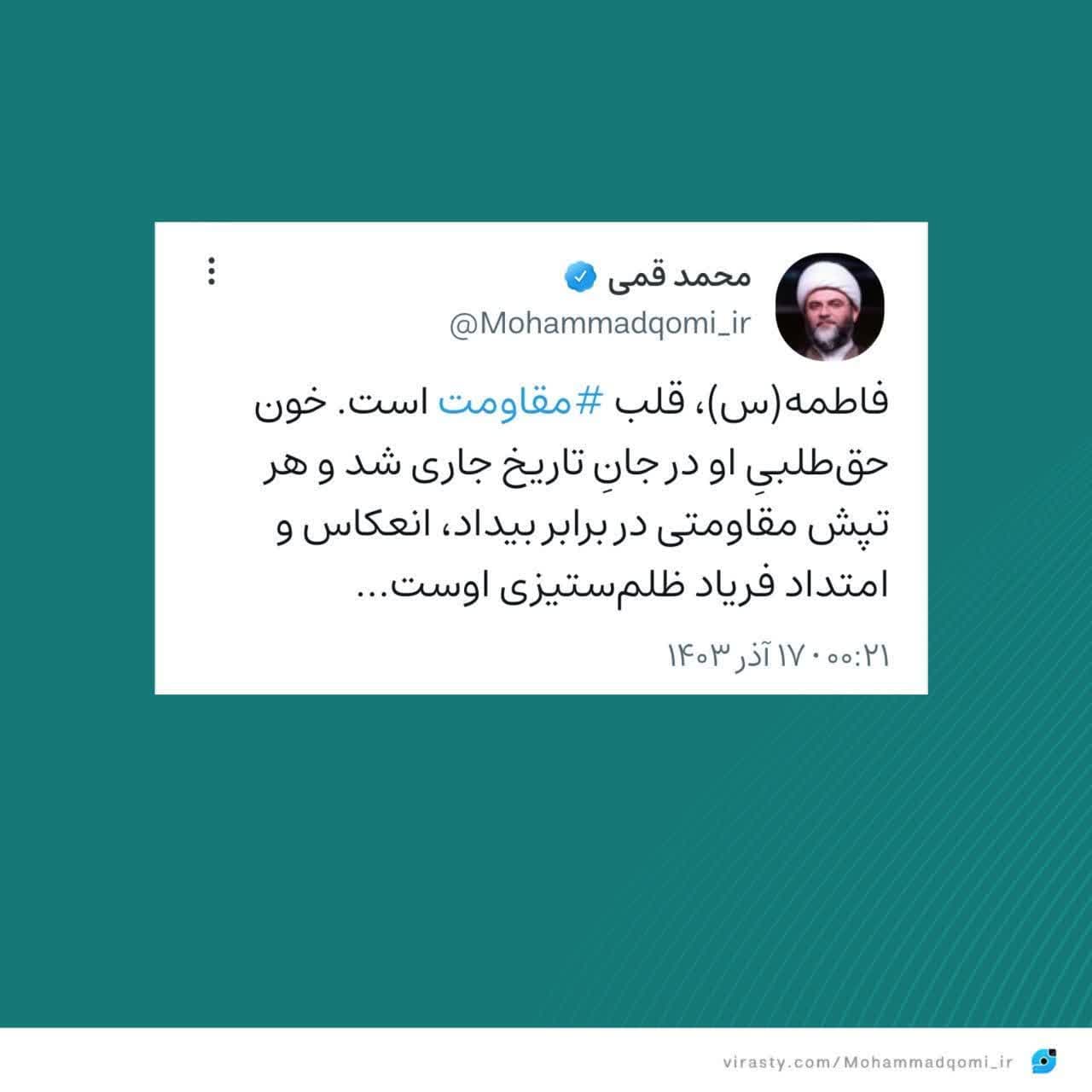 ۱۷ آذر | حجتالاسلام قمی در صفحه شخصی خود نوشت؛
