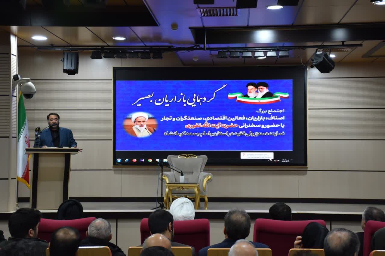 نشست جهاد تبیین فعالان اقتصادی استان کرمانشاه با سخنرانی آیتالله غفوری، نماینده محترم ولی فقیه در استان و امام جمعه کرمانشاه، در ساختمان صنعت و معدن این شهر برگزار شد. در این نشست، فعالان اقتصادی ضمن بیان دغدغهها و ارائه راهبردهای کاربردی، بر اهمیت تقویت اقتصاد مقاومتی و مقابله با چالشهای اقتصادی تأکید کردند. آیتالله غفوری در سخنان خود بر لزوم تبیین اقتصاد مقاومتی به عنوان راهکاری بنیادین برای استقلال اقتصادی کشور تأکید کرد.